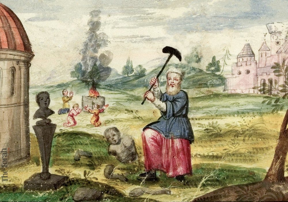 In this tale, which reads like a comedy, Abraham, with a trickster’s guile, demolishes his father Terah’s workshop of clay gods, then places the hammer in the hands of the largest idol, crafting a satirical tableau that mocks idolatry’s absurdity—an act of iconoclastic parody that prefigures the tradition’s anti-humanist ethos. When challenged by the king’s court, his deadpan retort that the idols “fought among themselves” employs an irony laced with prophetic comedic audacity, exposing the folly of man-made deities with a rhetorical feint as elegant as it is devastating. This vignette, rich in allegorical resonance, crystallizes the Abrahamic moral grammar: a subversive simplicity that dismantles hubris—whether pagan or secular—with a humble, biting wit that we need to recall to smash our current fragmented idols.